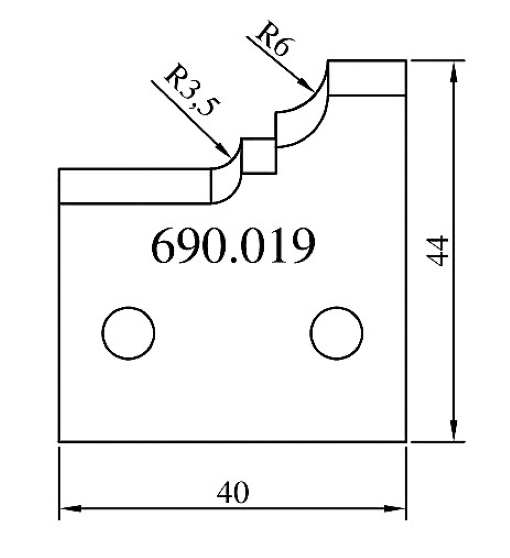 Серия 690 Тип ножей нож профильный для фрез 692/693 Длина (L) 40 мм Толщина (T) 4 мм Материал (Mat) SP Обрабатываемый материал массив мягкие породы -
