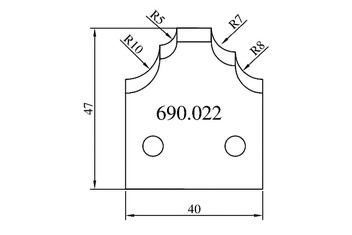 Серия 690 Тип ножей нож профильный для фрез 692/693 Длина (L) 40 мм Толщина (T) 4 мм Материал (Mat) SP Обрабатываемый материал массив мягкие породы -