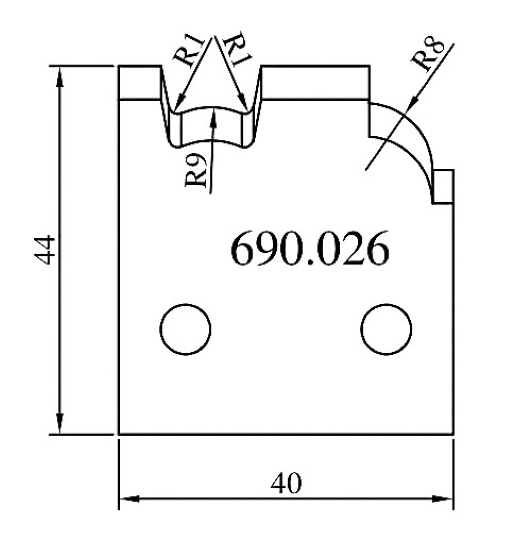 Серия 690 Тип ножей нож профильный для фрез 692/693 Длина (L) 40 мм Толщина (T) 4 мм Материал (Mat) SP Обрабатываемый материал массив мягкие породы -