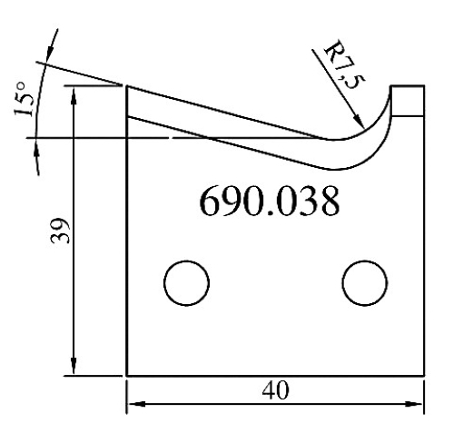 Серия 690 Тип ножей нож профильный для фрез 692/693 Длина (L) 40 мм Толщина (T) 4 мм Материал (Mat) SP Обрабатываемый материал массив мягкие породы -