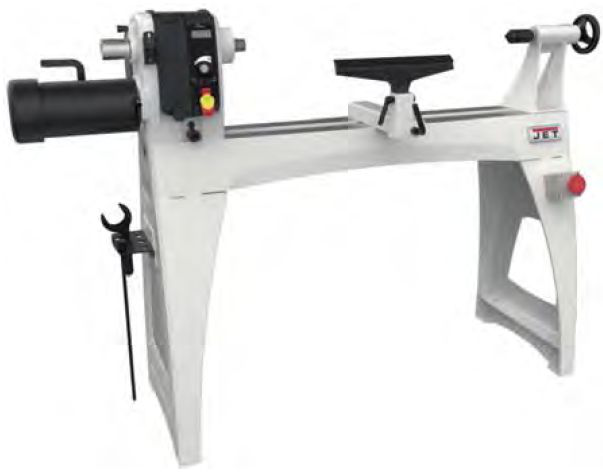 JWL-1840EVS штатно комплектуется 4-дюймовыми проставками для опорных ног, позволяющими менять высоту станка над уровнем пола. Оба станка можно оснастить поворотным кронштейном (опция арт. 719001) для быстрого съема (откидывания) задней бабки, что удобно при точении торцевой части заготовки или в ее полости.Особенности: