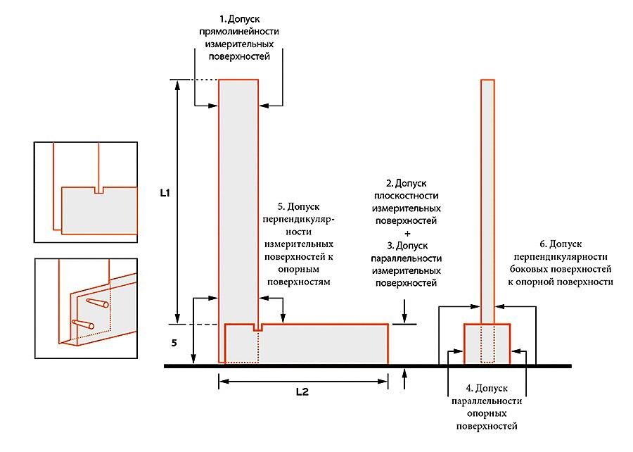 - Допуск перпендикулярности измерительных поверхностей к опорным поверхностям 48 мкм (0.0019")