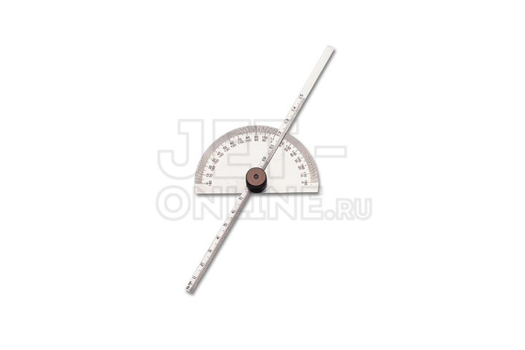 Изготовленная из нержавеющей стали, шкала имеет глубокие травленые градуировки, 0-180° в обеих направлениях.Глубиномер 150 мм (6") имеет дюймовую градуировку с одной стороны и метрическим с другой, и может быть установлен под любым желаемым углом для использования в качестве транспортира и по длине при использовании в качестве измерителя глубины.
