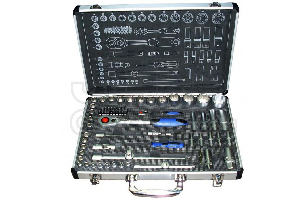 Набор автомобильного инструмента в алюминиевом кейсе, на 75 предметов, хром-ванадий.