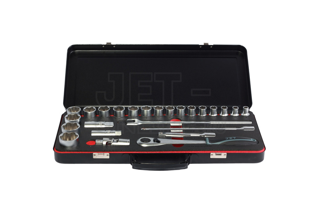Набор торцевых ключей в мет. кейсе, 24 предмета, с трещоткой 1/2
