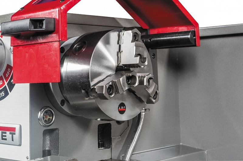 Следуя стандартам качества, компания JET оснащает свои токарные станки, включая и GHB-1330A, закаленными и тщательно отшлифованными направляющими станины, что повышает точность обработки и увеличивает срок службы оборудования. Шестерни передней бабки также закалены и отшлифованы. Их придется менять только лишь при переходе с нарезания метрической резьбы на дюймовую. С целью обеспечения непрерывного охлаждения, снижения уровня шума и увеличения ресурса механизм привода шпинделя помещен в масляную ванну. Станок оснащен механизмом автоматической подачи продольного и поперечного суппорта, а также регулируемой в поперечном направлении задней бабкой для обточки конических заготовок. Как и все станки этой линейки, GHB-1330A построен по двухвинтовой схеме: ходовой винт отвечает за резьбу, ходовой вал, отвечает за точение в автоматическом режиме. Также предусмотрен толчковый режим работы шпинделя для облегчения переключения режимов работы.
