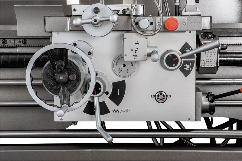 Конструктив GH-1640 ZX DRO имеет облегченное исполнение. Это достигается, прежде всего, за чет снижения металлоемкости станины, направляющие которой закаляются и шлифуются по фирменной технологии. Предусмотрена регулировка зазоров при помощи клиновых планок.