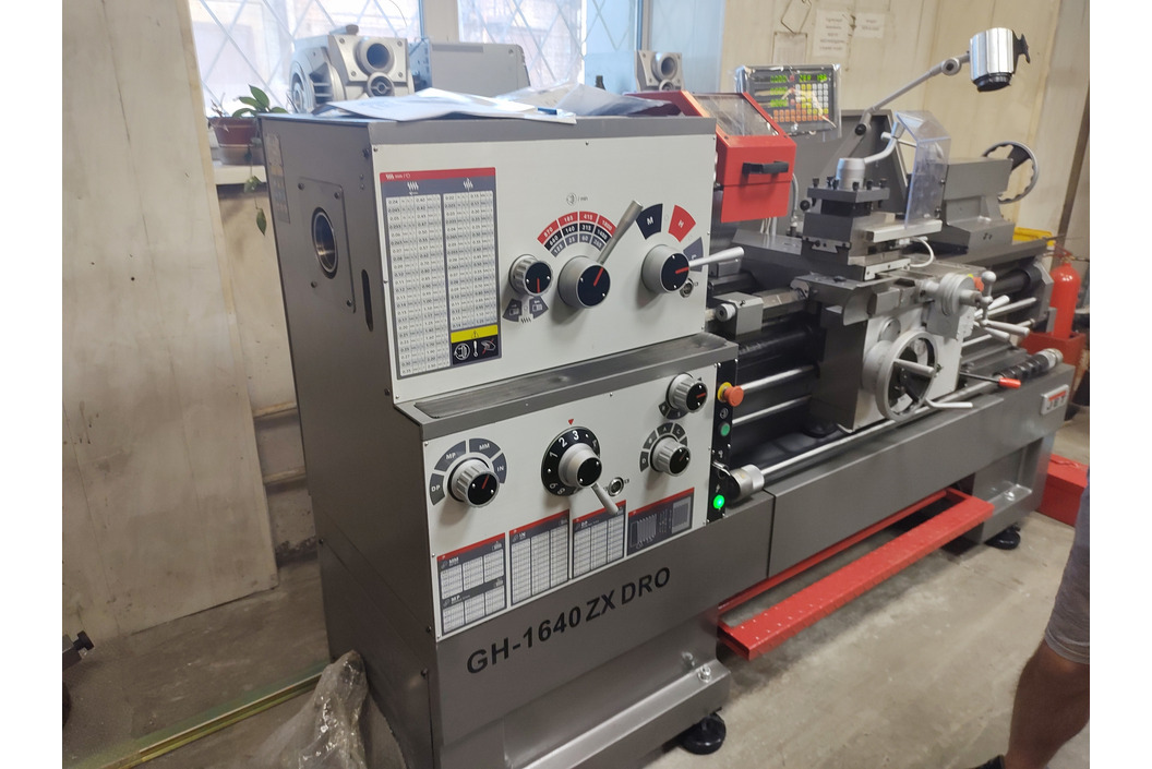 Высокотехнологичный токарно-винторезный станок GH-1640 ZX DRO индустриального класса. На станке можно обтачивать детали из различных сортов стали, сплавов, алюминия, цветных металлов и чугуна. Он рассчитан на повышенные нагрузки и будет незаменим там, где требуются повышенная скорость и качество обработки. На станке можно работать с деталями диаметром до 406 мм, расстояние между центрами - 1015 мм. При съемном gap-мостике максимальный диаметр обрабатываемой заготовки увеличивается до 590 мм (при ограничении длины в 270 мм).