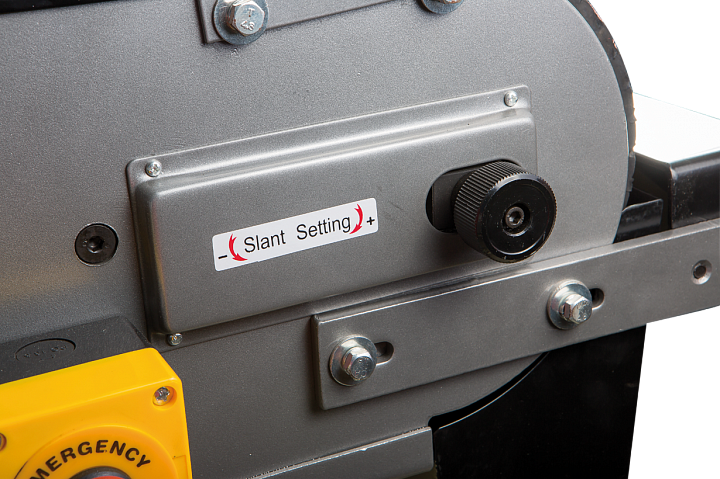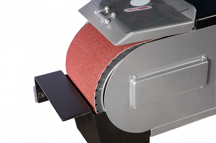 Привод обеспечивает постоянное движение ленты со скоростью 29 м/сек. Для удобства работы рама станка имеет приспособление для ее подъема до +30° и опускания до -15°. Чтобы обезопасить оператора, у JBSM-150 имеется защитный экран наиболее вероятной травматической зоны над ведомым роликом. Если не требуется шлифовать крупные заготовки по длине ленты, ее можно закрыть защитной крышкой. рядом с рабочей зоной предусмотрена кнопка аварийного отключения питания. Чтобы эффективно отводить пыль и стружку, неизбежно образующихся при шлифовке, станок оборудован устройством пылеотсоса с диаметром патрубка 97 мм.