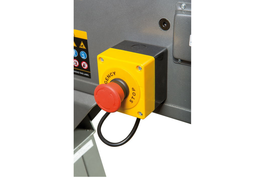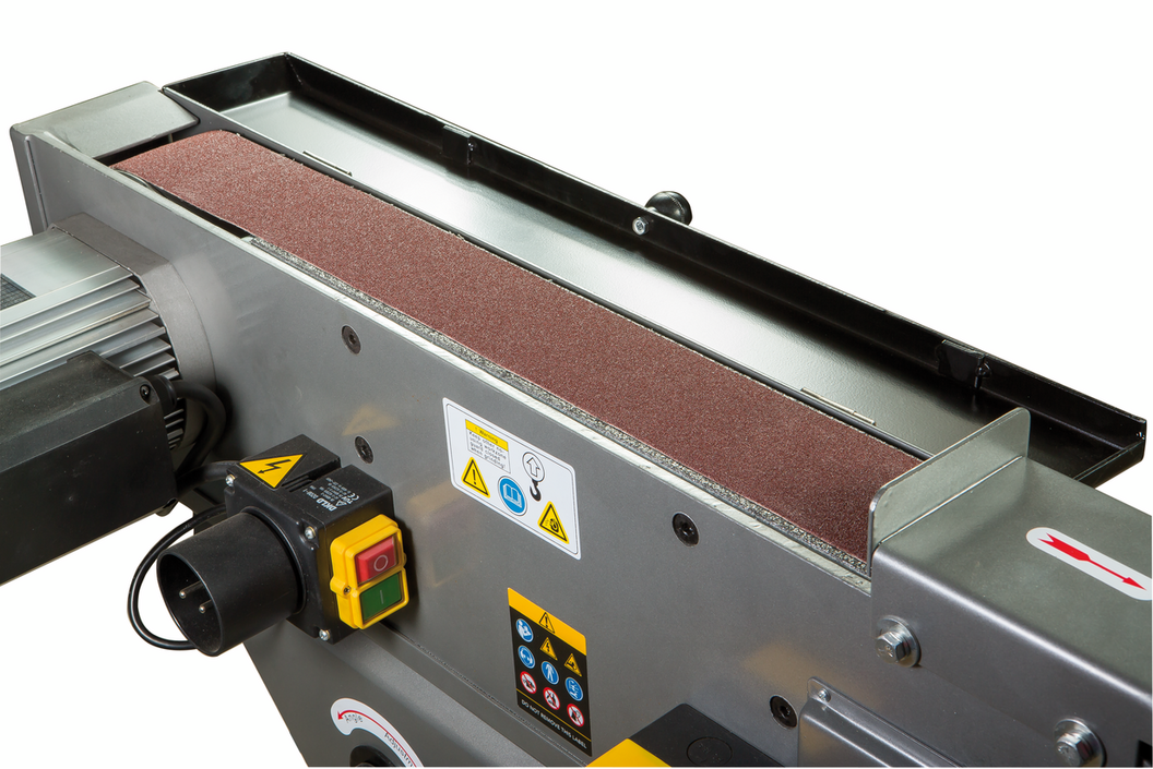 Предусмотрена кнопка аварийного отключения питания, расположенная в легкодоступном месте. Станок имеет собственное устройство пыле- и стружкоотведения с диаметром вытяжки 97 мм, также предусмотрено подключение внешнего стружкопылесоса (промышленного пылесоса), диаметр парубка -100 мм. Чтобы обеспечить максимальную устойчивость конструктив JBSM-75 установлен на прочную жесткую станину с широким основанием, которое, в свою очередь, фиксируется к полу при помощи винтов. Такое решение позволяет свести к минимуму уровень вибраций, возникающих при работе. Станок поставляется полностью готовым к работе, в комплект поставки входит даже шлифовальная лента с наиболее востребованным классом зернистости 60. В качестве опций производитель предлагает карандаш для очистки ленты, гибкие рукава для подключения стружкоотсоса.