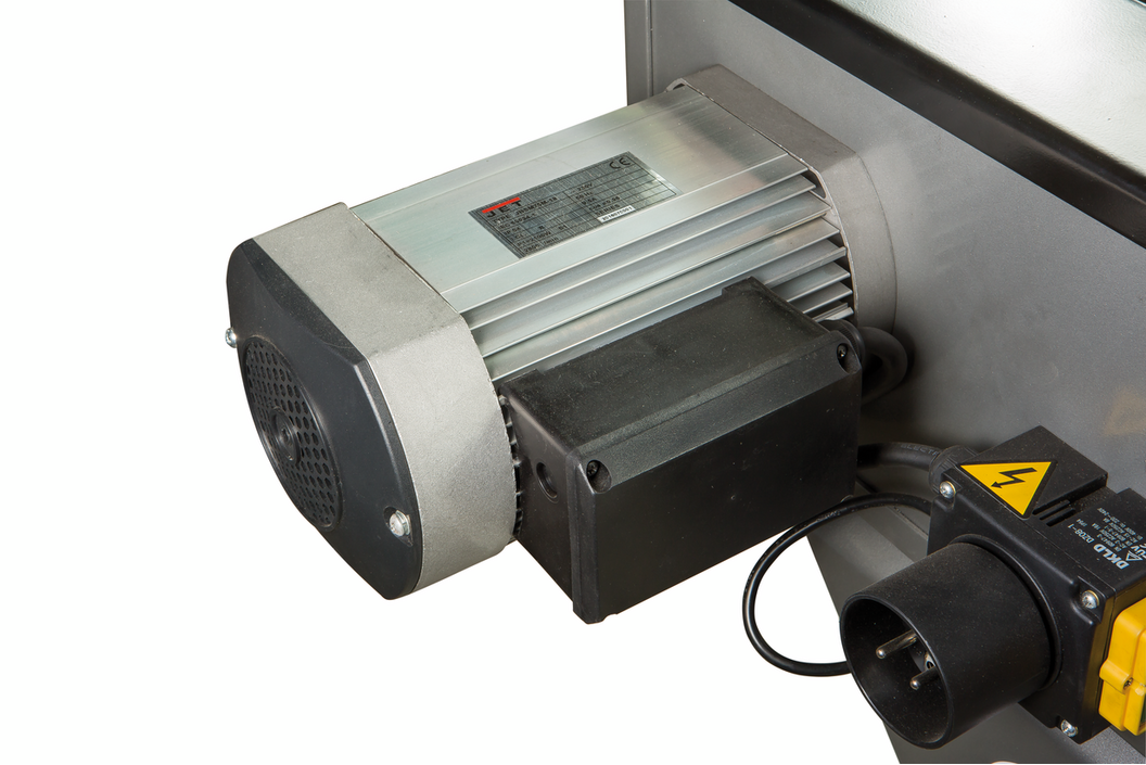 Поскольку данная модель ориентирована на небольшие производства, привод JBSM-75 рассчитан на работу от сети 220В и может быть подключен к обычной бытовой розетке. Для удобства работы и расширения сфер применения станка инженеры JET применили оригинальное техническое решение: угол наклона рамы можно изменять в пределах от - 10 до +30°. Изделие оснащено несколькими устройствами безопасности. Наиболее опасная зона над ведомым роликом защищена специальным прозрачным экраном. Когда нет необходимости в шлифовке длинномерных заготовок верхнюю часть ленты можно закрыть крышкой.
