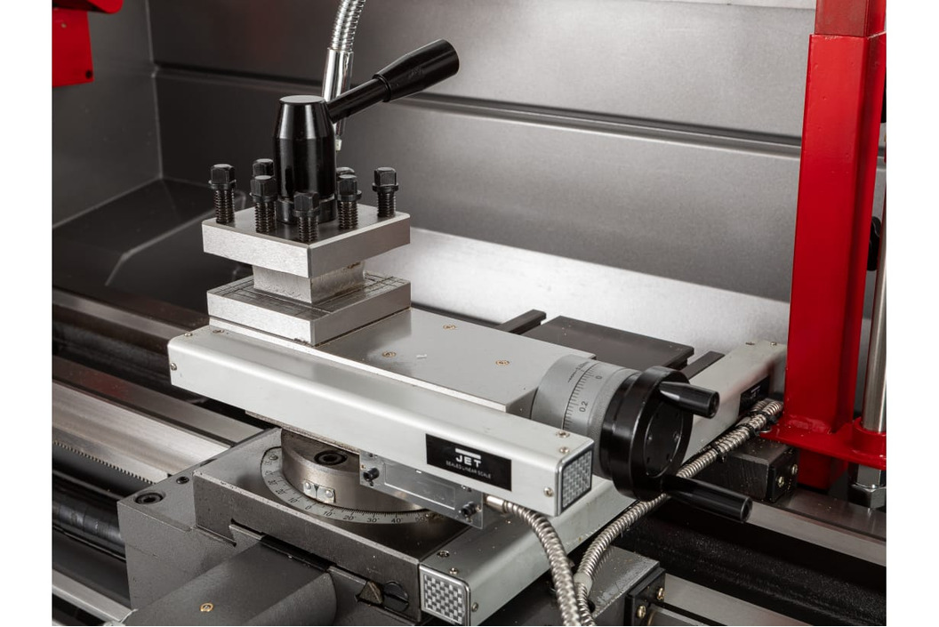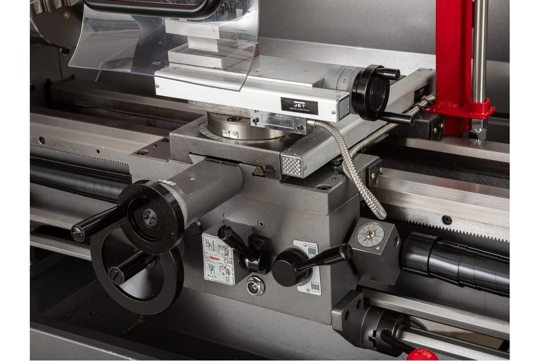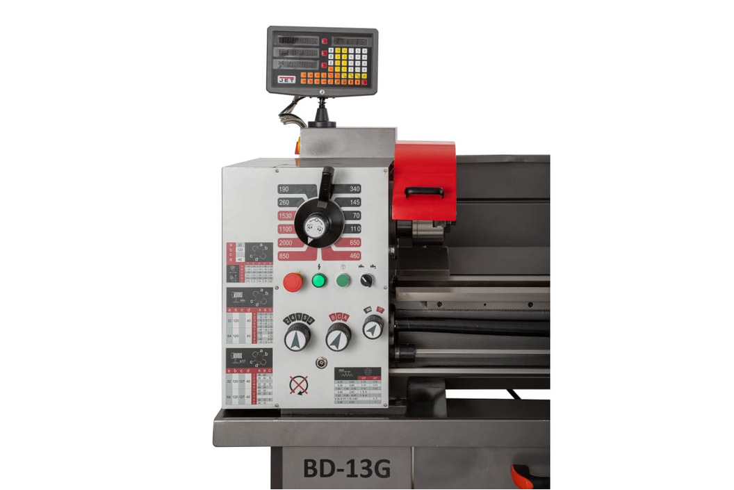 JET BD-13G имеет 15 типов продольных и поперечных подач в автоматическом режиме, а также позволяет нарезать 18-ть видов метрических и 13-ть видов дюймовых резьб. Для удобства нарезания длинных резьб, станок укомплектован резьбоуказателем. На станке предусмотрена возможность нарезания правой и левой резьбы