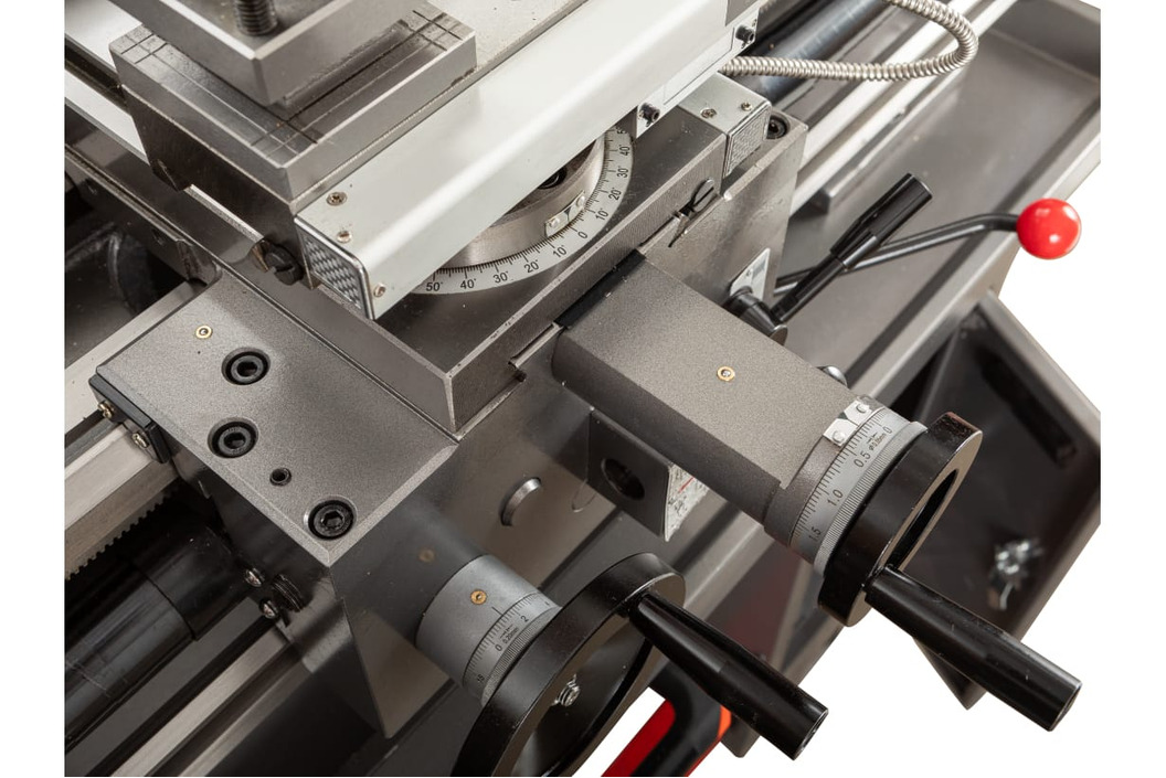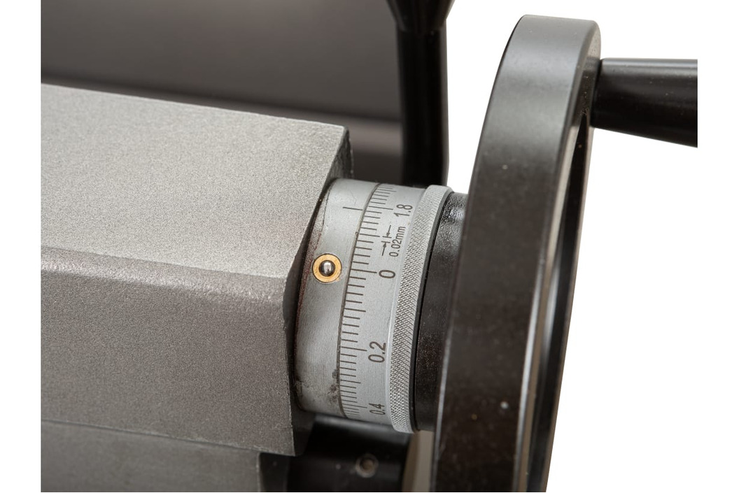 - Массивная задняя бабка с регулировкой смещения для обточки конусов и рычагом быстрой фиксации
