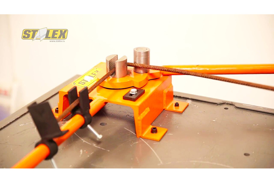 Станок представляет собой перемещаемый вал, который используется для гибки арматуры. Обрабатываемое изделие жестко фиксируется в зажимах. Станок Stalex DR12 снабжен ограничителем угла гиба, а так же ограничителем длины подачи армирующего прута, что позволят сгибать арматуру с высокой точностью и повторяемостью.Особенности: