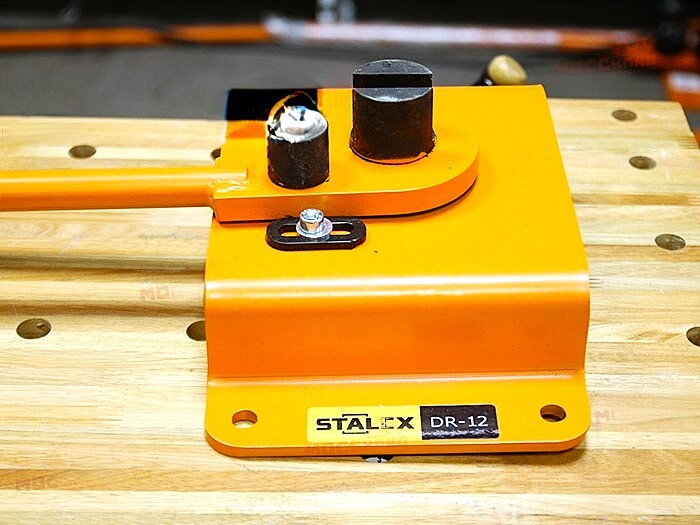 - Станок Stalex DR12 оснащен ограничителем угла гиба и ограничителем длины подачи прута.