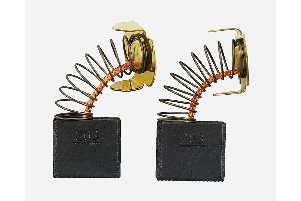 Комплект из двух отдельных графитовых щёток. Риска на корпусе щётки сигнализирует о необходимой замене. Своевременная замена щёток существенно продлевает срок службы электроинструмента.